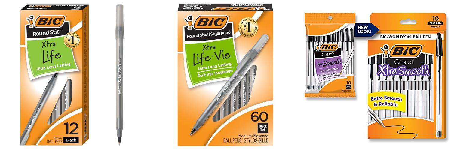 1. BIC Round Stic Xtra Life Black Ballpoint Pens