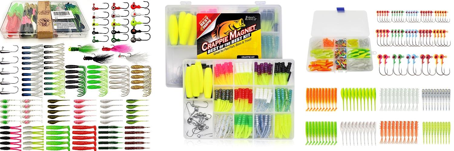 1. VMSIXVM Crappie Lures Tube Lures Jigs Heads Worms Swimbaits Kit
