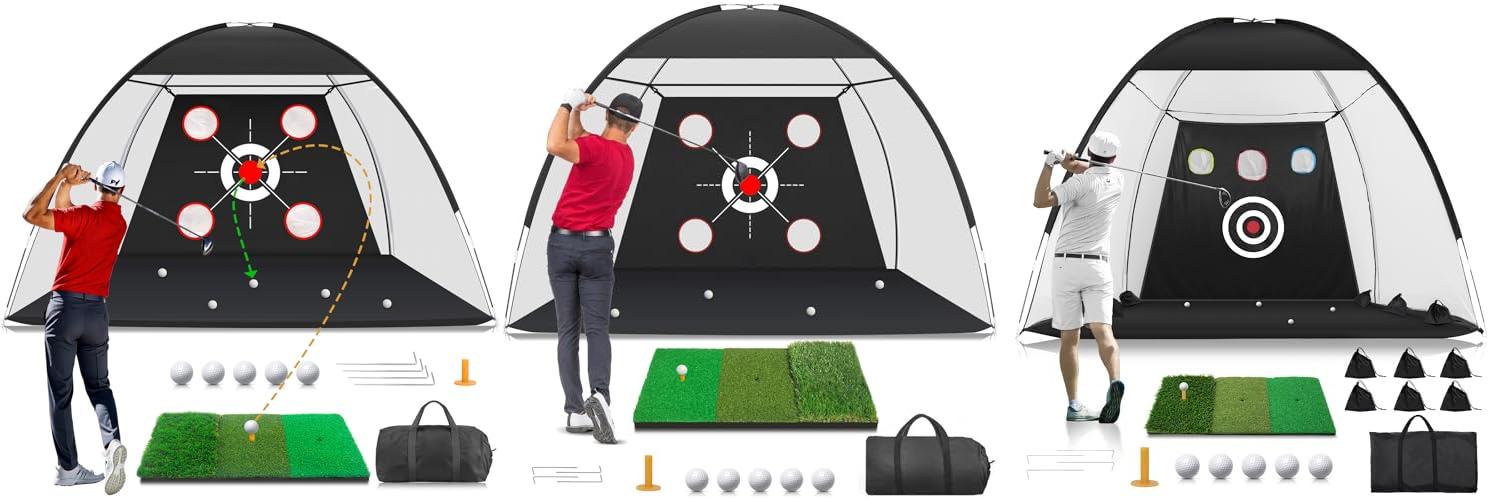 The Zensouds Golf Net, 10x7FT with Golf Practice Mat, Hitting Aid Nets for Backyard Driving Chipping Training Swing with Targets Outdoor or Indoor– Gifts for Men/Dad/Him is a fantastic tool for any golfer looking to sharpen their skills. It’s designed for both indoor and outdoor use, making practice convenient no matter the weather.