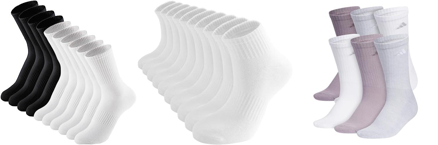 3. adidas Women’s Athletic Cushioned Crew Socks with Arch Support