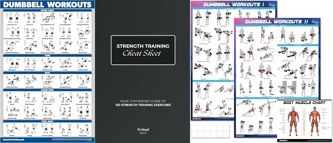 3. Dumbbell Workout Poster Set (2 Pack) – Workout Charts for Home Gym