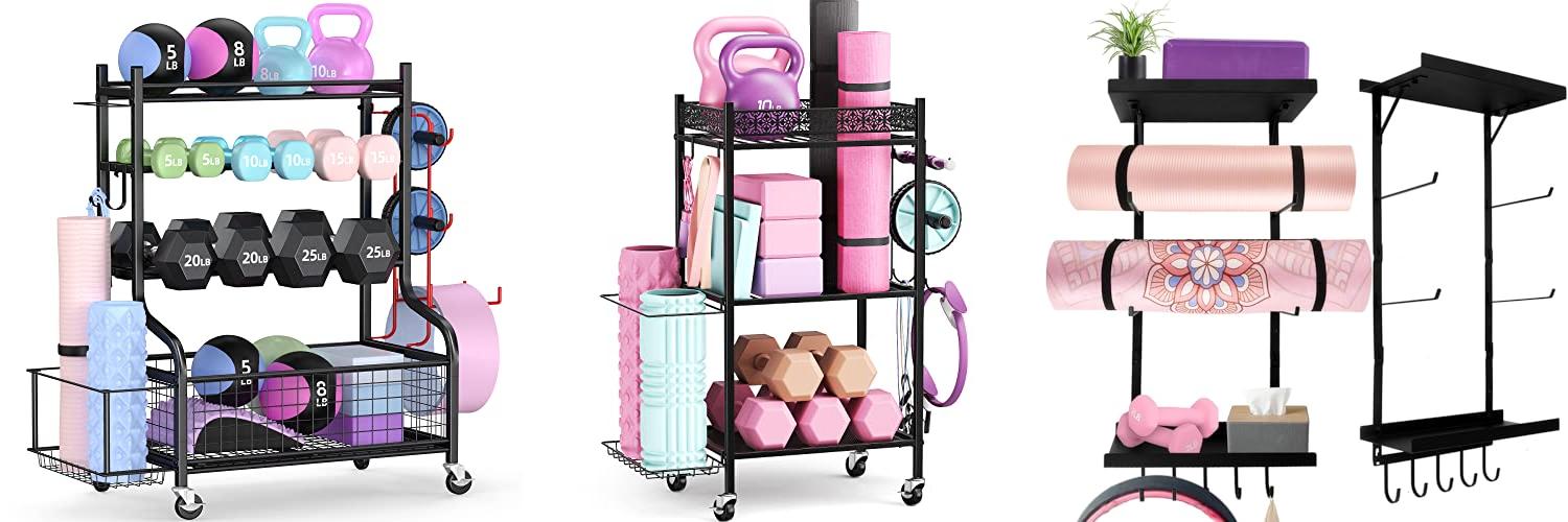 • You can store yoga mats, foam rollers, dumbbells, and more on it.