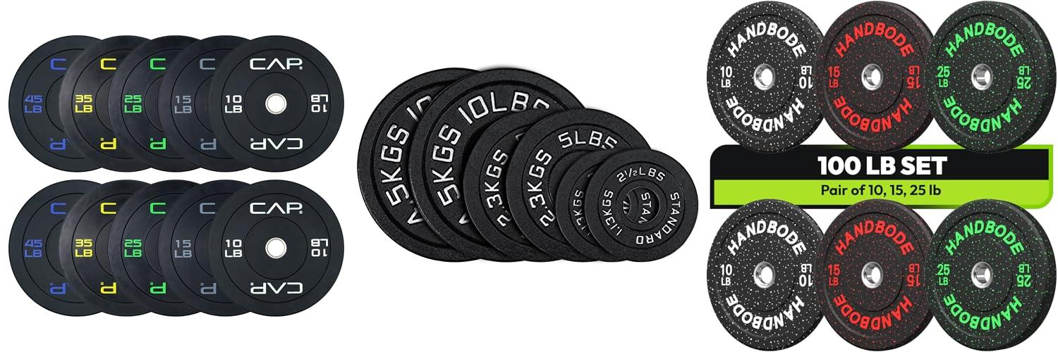 1. CAP Barbell 260 lb Economy Olympic Bumper Plate Set with Color Logo