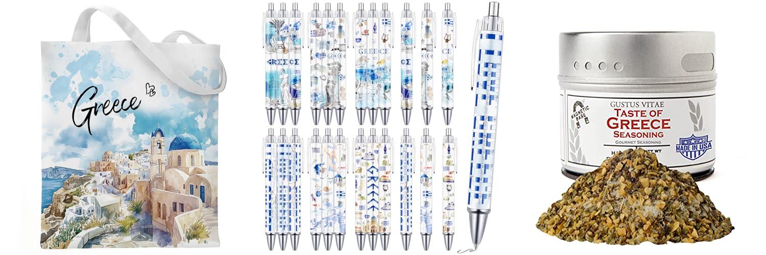 2. Wxiben Greece Ballpoint Pens Gifts – 24PCS Greece Travel Pens Set Greece Souvenirs Gift Retractable Smooth Writing Greek Civilization Pens for Office School Supplies for Women Traveler Teacher Gift