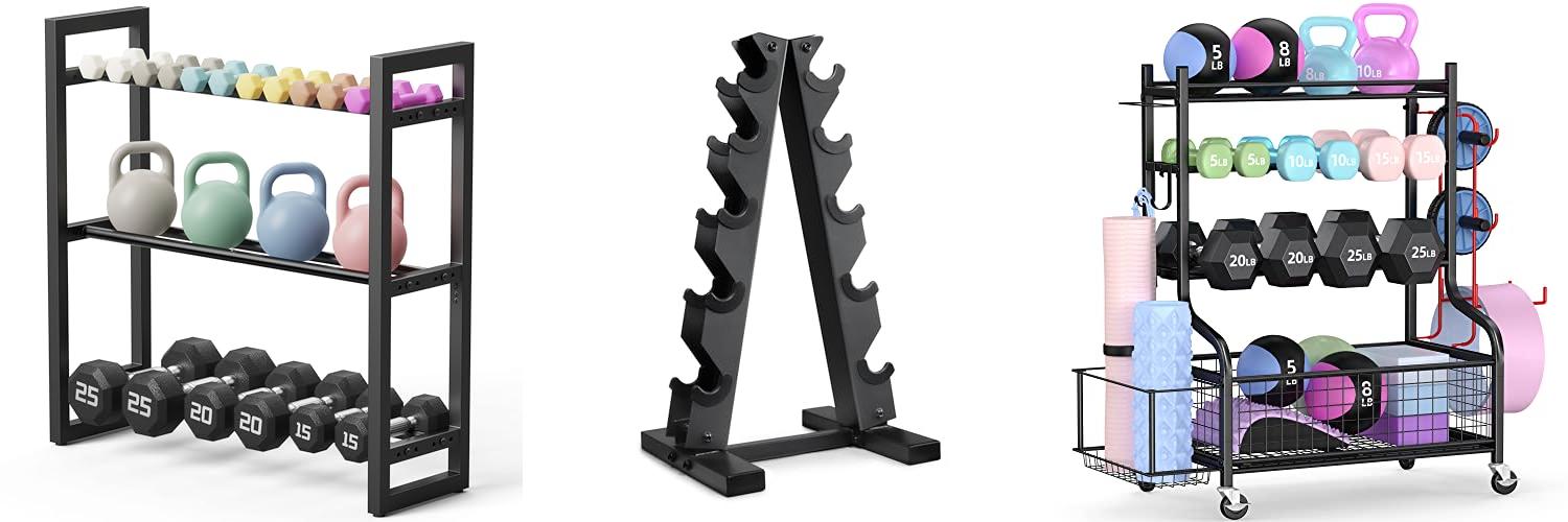 - Storage Options: Some racks hold only dumbbells. Others have spots for barbells, weight plates, and kettlebells. Think about what weights you have.